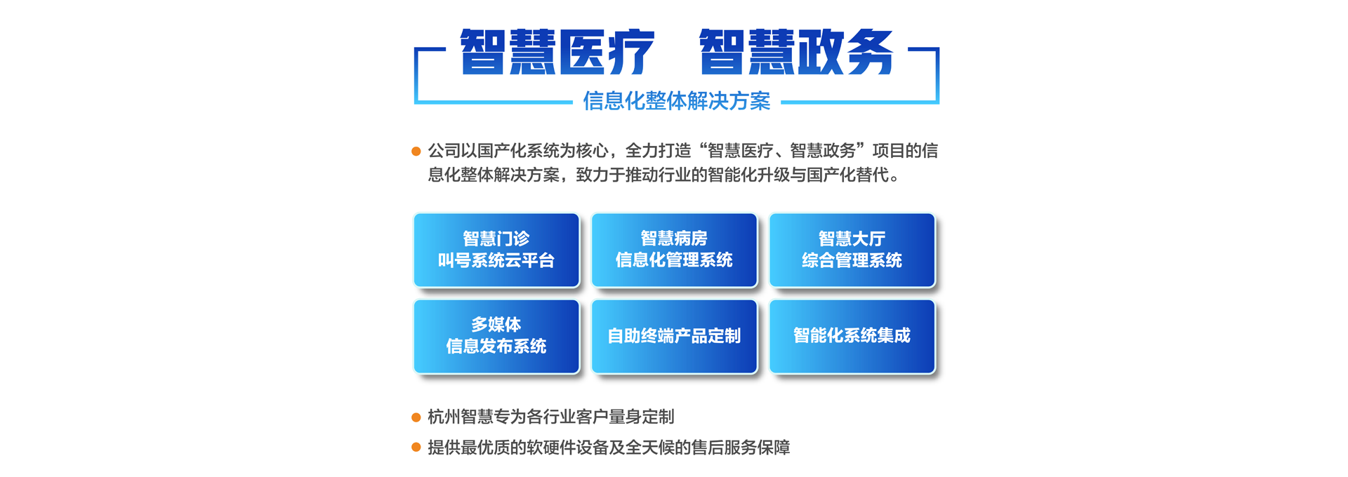 杭州智慧科技有限公司初創(chuàng)于2003年,總部位于重要的電子商務(wù)中心中國杭州公司主營業(yè)務(wù)有:智慧分診叫號系統(tǒng)、智慧病房醫(yī)護(hù)對講系統(tǒng)、智慧大廳綜合管理系統(tǒng)、智慧政務(wù)管理系統(tǒng)、智慧多媒體信息發(fā)布系統(tǒng)、導(dǎo)診系統(tǒng)及各自助終端產(chǎn)品定制。專為各行業(yè)客戶量身定制。公司已有20余年行業(yè)經(jīng)驗(yàn)沉淀積累,擁有優(yōu)秀的產(chǎn)品外觀設(shè)計(jì)師和各類中高級專業(yè)技術(shù)工程師,確保所研發(fā)的產(chǎn)品具有行業(yè)領(lǐng)先的外觀及可靠的技術(shù)性能。并擁有權(quán)威部門頒發(fā)的各類知識產(chǎn)權(quán)及專利證書,30多項(xiàng)資質(zhì)證書、800多個(gè)合作伙伴、2000多個(gè)項(xiàng)目成功案例經(jīng)驗(yàn)。 智慧產(chǎn)品已遍及全國各醫(yī)療、政務(wù)、金融、通訊、公安、工商、稅務(wù)等行業(yè),形成以“立足杭州、輻射長三角、拓展全國”的戰(zhàn)略發(fā)展格局,產(chǎn)品經(jīng)過歷年不斷創(chuàng)新,形成專業(yè)化、平臺化,致力于成為智慧產(chǎn)品的領(lǐng)軍企業(yè)。 公司建立了完善的技術(shù)培訓(xùn)及售后服務(wù)中心,并設(shè)24小時(shí)熱線咨詢電話解答用戶反饋的問題。同時(shí)應(yīng)客戶要求定期派技術(shù)人員到 全國各地進(jìn)行技術(shù)指導(dǎo)輔助用戶正確使用智慧產(chǎn)品并能獨(dú)立安裝、調(diào)試、日常維護(hù)等工作。提供最優(yōu)質(zhì)的設(shè)備及全天候的售后服務(wù)保障,智慧永恒不變的服務(wù)宗旨——致力于客戶的滿意與成功!...